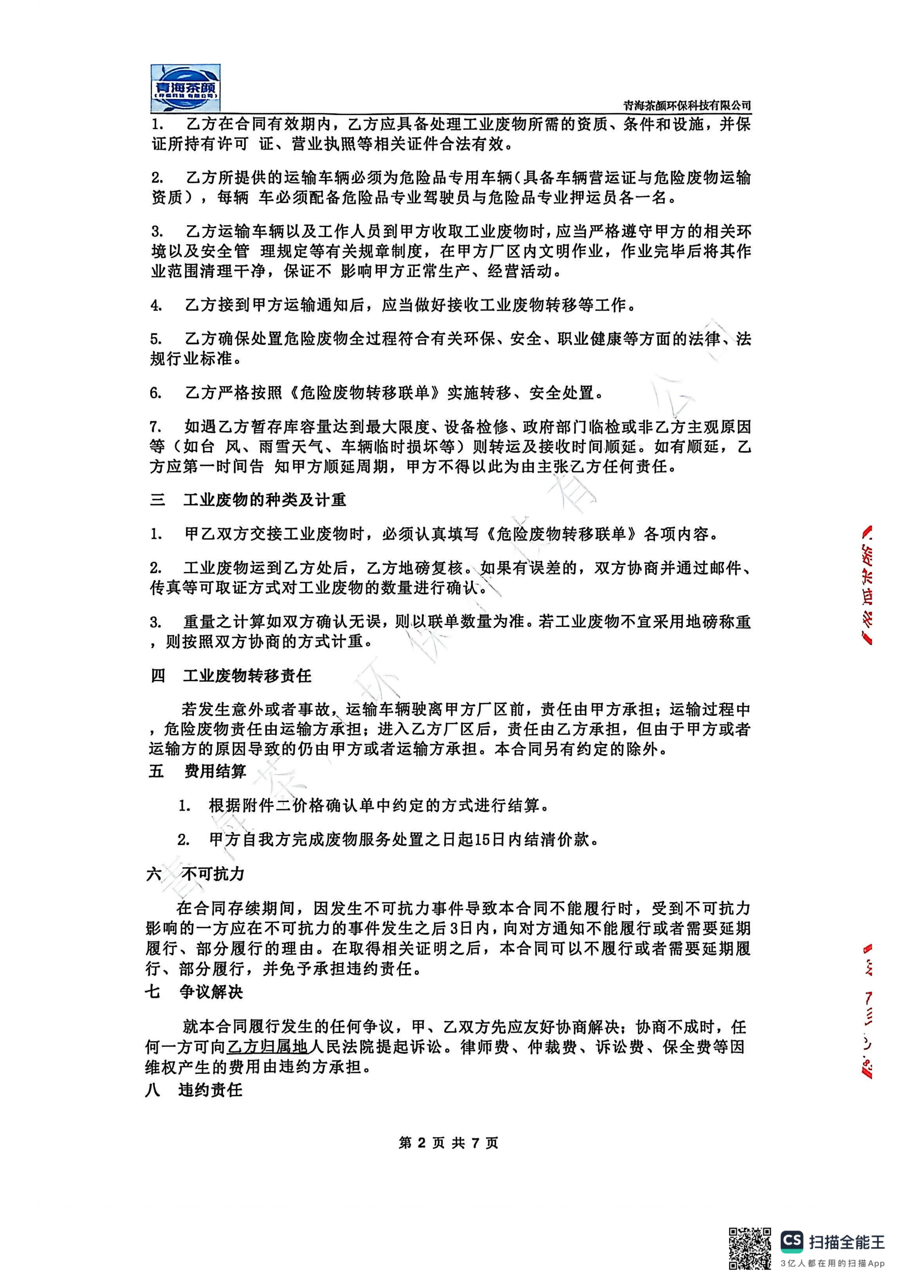 危廢處置合同