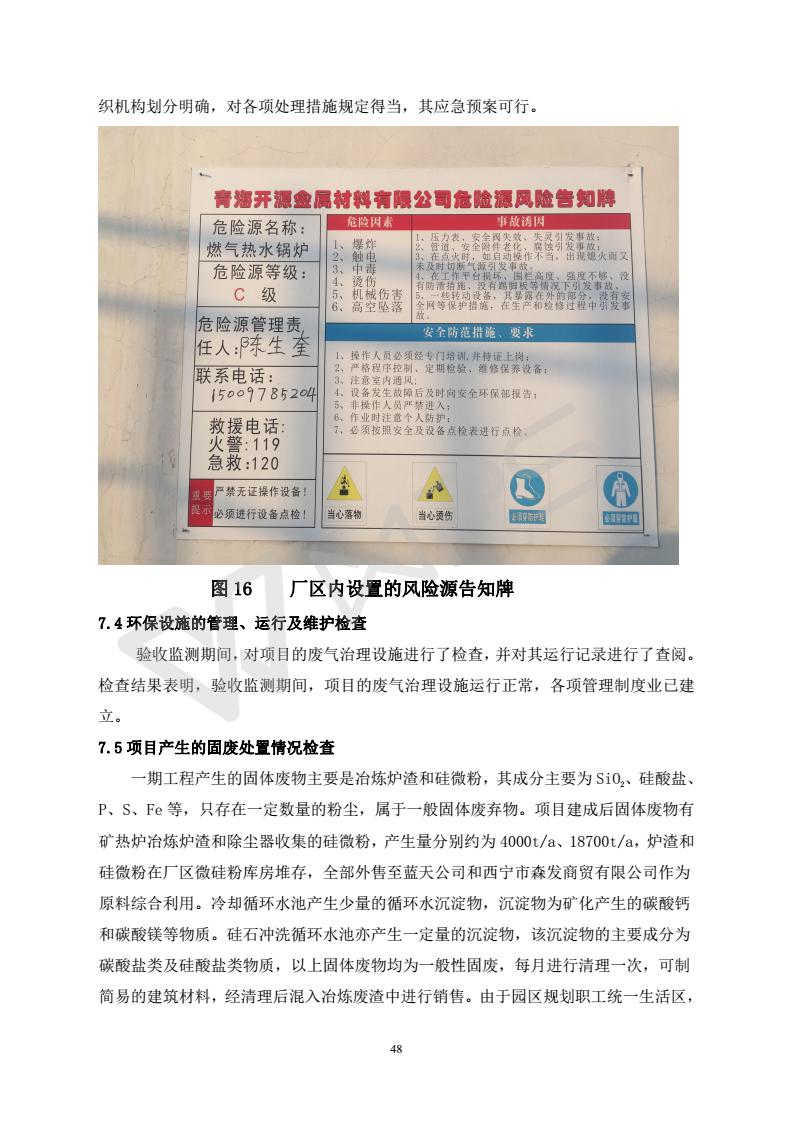 2018年1月11日,青海開源金屬材料有限公司組織召開20萬噸/年特殊硅鐵生產(chǎn)基地建設(shè)項目(一期工程)竣工環(huán)境保護驗收會。 青海開源金屬材料有限公司20萬噸特殊硅鐵生產(chǎn)基地建設(shè)項目(一期工程)驗收組意見.