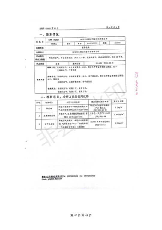 根據(jù)中華人民共和國國務(wù)院令第253號《建設(shè)項目環(huán)境保護管理條例》(中華人民共和國國務(wù)院令第682號《國務(wù)院關(guān)于修改〈建設(shè)項目環(huán)境保護管理條例〉的決定》和《建設(shè)項目竣工環(huán)境保護驗收暫行辦法》,嚴格依照有關(guān)法律法規(guī),建設(shè)項目環(huán)境保護設(shè)施驗收技術(shù)規(guī)范,本項目環(huán)評報告表和環(huán)保審批部門審批意見以及企業(yè)自行驗收相關(guān)要求等對本項目進行驗收,本項目符合環(huán)保驗收條件,可以通過環(huán)保驗收。 海東市樂都區(qū)同泰科技有限公司竣工環(huán)境保護驗收監(jiān)測報告公示
