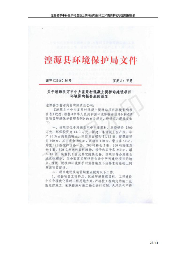 湟源縣申中鄉(xiāng)星泉村混凝土攪拌站項(xiàng)目竣工環(huán)境保護(hù)驗(yàn)收監(jiān)測(cè)報(bào)告表公示發(fā)布日期:(2018-11-16) 點(diǎn)擊次數(shù):2252 |