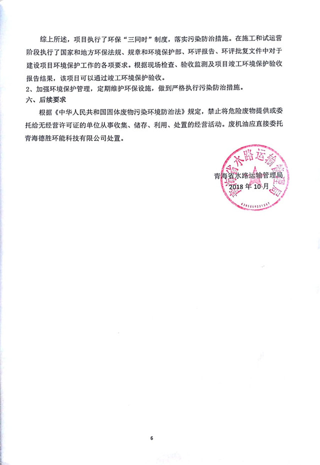 根據(jù)中華人民共和國(guó)國(guó)務(wù)院令第253號(hào)《建設(shè)項(xiàng)目環(huán)境保護(hù)管理?xiàng)l例》(中華人民共和國(guó)國(guó)務(wù)院令第682號(hào)《國(guó)務(wù)院關(guān)于修改〈建設(shè)項(xiàng)目環(huán)境保護(hù)管理?xiàng)l例〉的決定》和《建設(shè)項(xiàng)目竣工環(huán)境保護(hù)驗(yàn)收暫行辦法》,嚴(yán)格依照有關(guān)法律法規(guī),建設(shè)項(xiàng)目環(huán)境保護(hù)設(shè)施驗(yàn)收技術(shù)規(guī)范,本項(xiàng)目環(huán)評(píng)報(bào)告表和環(huán)保審批部門審批意見以及企業(yè)自行驗(yàn)收相關(guān)要求等對(duì)本項(xiàng)目進(jìn)行驗(yàn)收,本項(xiàng)目符合環(huán)保驗(yàn)收條件,可以通過環(huán)保驗(yàn)收。 現(xiàn)將本項(xiàng)目竣工環(huán)境保護(hù)驗(yàn)收情況進(jìn)行公開,并征求公眾意見。一、征求意見日期:自公示之日起20個(gè)工作日 二、征求意見期間,驗(yàn)收組接受反映公示的建設(shè)項(xiàng)目竣工環(huán)境保護(hù)驗(yàn)收情況和問題的來信、來訪和來電。 三、聯(lián)系方式 聯(lián)系人:張工 電 話:15297122093 通訊地址:青海省西寧市城北區(qū)經(jīng)四路創(chuàng)新創(chuàng)業(yè)大廈22號(hào)
