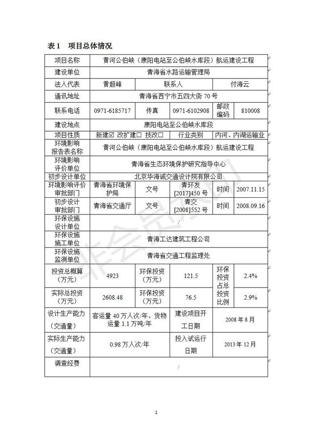 黃河公伯峽(康楊電站至公伯峽水庫段)航運(yùn)建設(shè)工程竣工環(huán)境保護(hù)驗(yàn)收調(diào)查報(bào)告表公示發(fā)布日期:(2018-11-16) 點(diǎn)擊次數(shù):2433 |