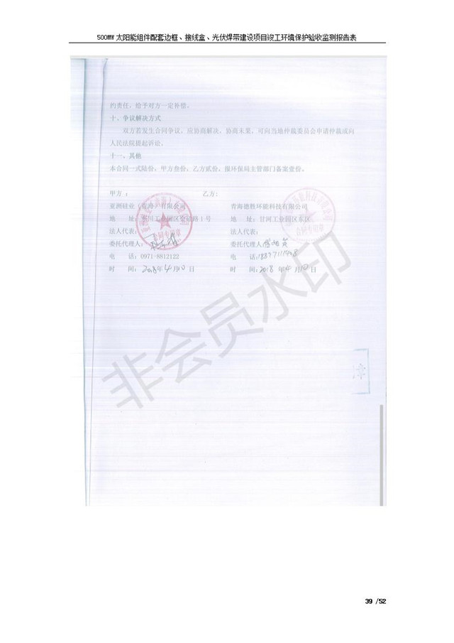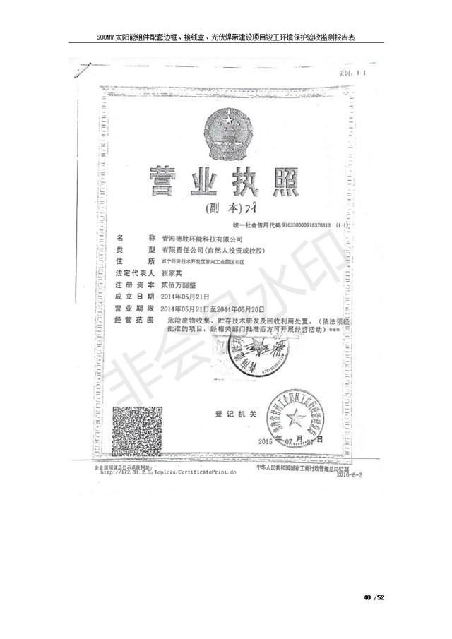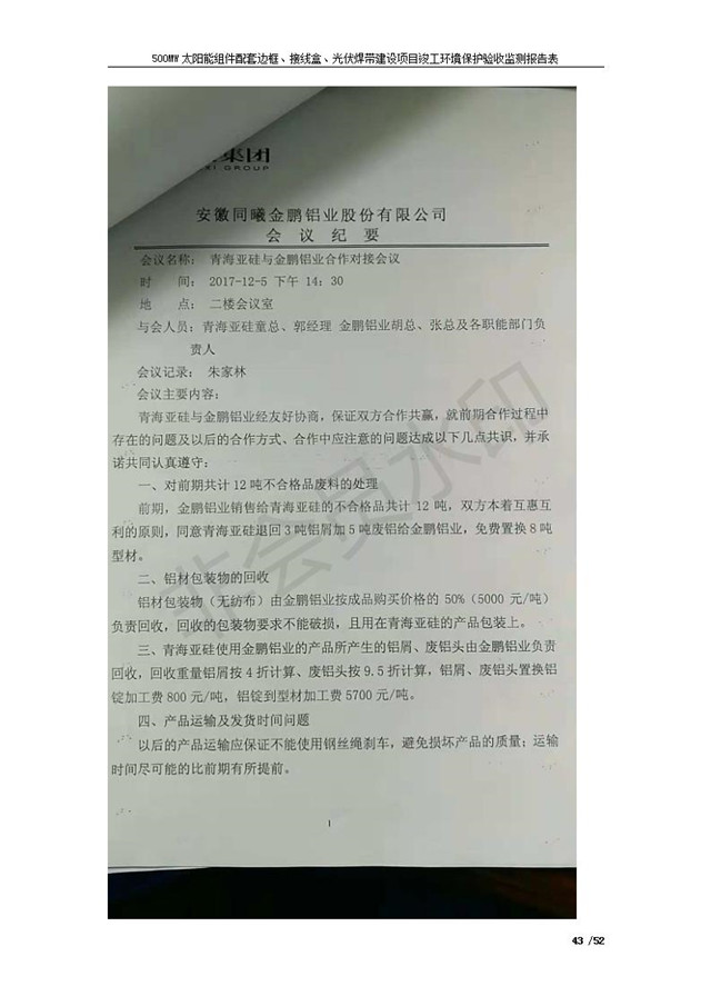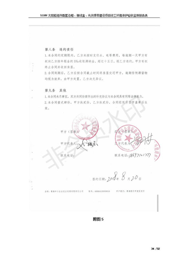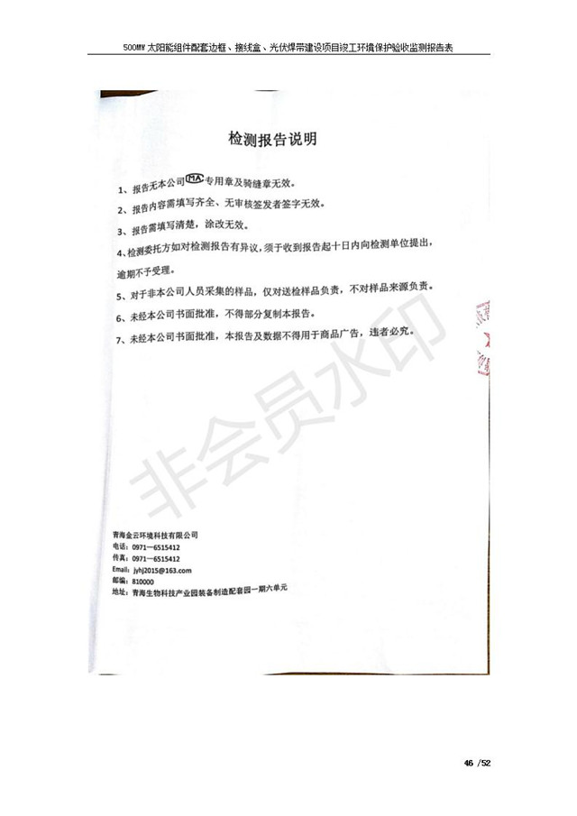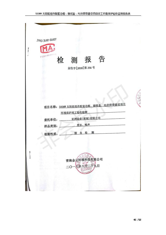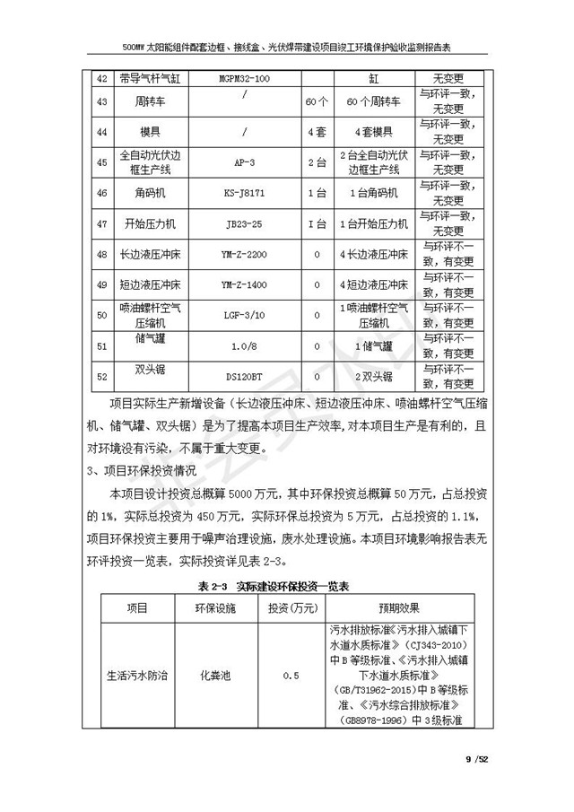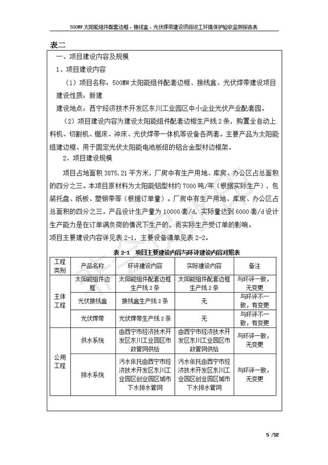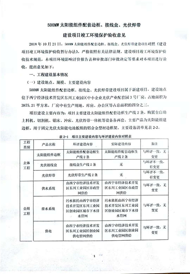 500MW太陽(yáng)能組件配套邊框、接線盒、光伏焊帶建設(shè)項(xiàng)目竣工環(huán)境保護(hù)驗(yàn)收監(jiān)測(cè)報(bào)告表公示