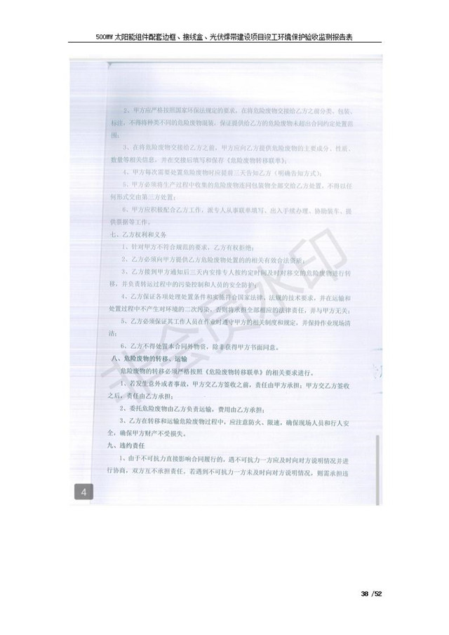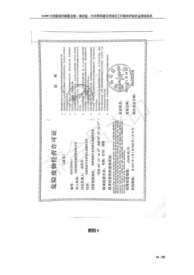 500MW太陽(yáng)能組件配套邊框、接線盒、光伏焊帶建設(shè)項(xiàng)目竣工環(huán)境保護(hù)驗(yàn)收監(jiān)測(cè)報(bào)告表公示發(fā)布日期:(2018-11-16) 點(diǎn)擊次數(shù):2100 |
