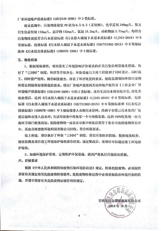 根據(jù)中華人民共和國(guó)國(guó)務(wù)院令第253號(hào)《建設(shè)項(xiàng)目環(huán)境保護(hù)管理?xiàng)l例》(中華人民共和國(guó)國(guó)務(wù)院令第682號(hào)《國(guó)務(wù)院關(guān)于修改〈建設(shè)項(xiàng)目環(huán)境保護(hù)管理?xiàng)l例〉的決定》和《建設(shè)項(xiàng)目竣工環(huán)境保護(hù)驗(yàn)收暫行辦法》,嚴(yán)格依照有關(guān)法律法規(guī),建設(shè)項(xiàng)目環(huán)境保護(hù)設(shè)施驗(yàn)收技術(shù)規(guī)范,本項(xiàng)目環(huán)評(píng)報(bào)告表和環(huán)保審批部門審批意見(jiàn)以及企業(yè)自行驗(yàn)收相關(guān)要求等對(duì)本項(xiàng)目進(jìn)行驗(yàn)收,本項(xiàng)目符合環(huán)保驗(yàn)收條件,可以通過(guò)環(huán)保驗(yàn)收。 現(xiàn)將本項(xiàng)目竣工環(huán)境保護(hù)驗(yàn)收情況進(jìn)行公開(kāi),并征求公眾意見(jiàn)。一、征求意見(jiàn)日期:自公示之日起20個(gè)工作日 二、征求意見(jiàn)期間,驗(yàn)收組接受反映公示的建設(shè)項(xiàng)目竣工環(huán)境保護(hù)驗(yàn)收情況和問(wèn)題的來(lái)信、來(lái)訪和來(lái)電。 三、聯(lián)系方式 聯(lián)系人:張工 電 話:15297122093 通訊地址:青海省西寧市城北區(qū)經(jīng)四路創(chuàng)新創(chuàng)業(yè)大廈22號(hào)
