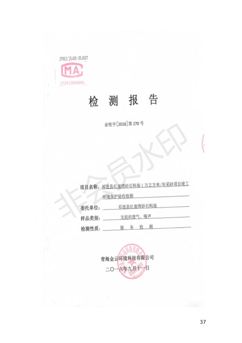 祁連縣紅崖灣砂石料場(chǎng)1萬(wàn)立方米/年采砂項(xiàng)目竣工環(huán)境保護(hù)驗(yàn)收監(jiān)測(cè)報(bào)告表公示