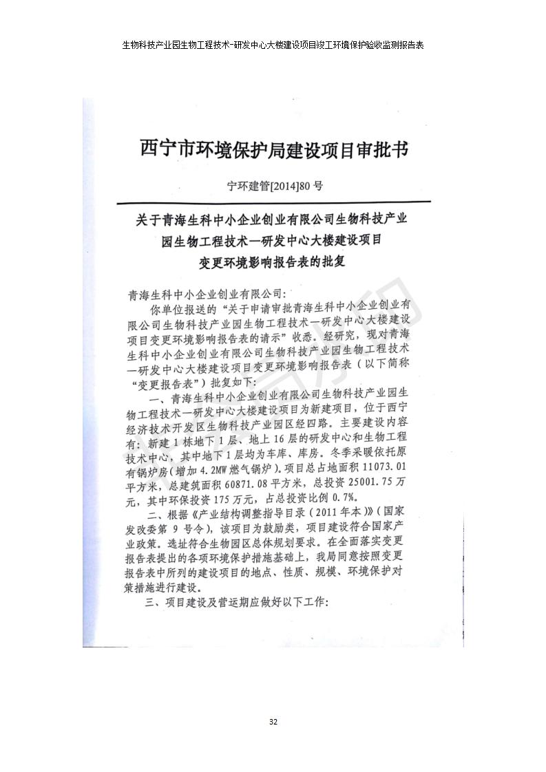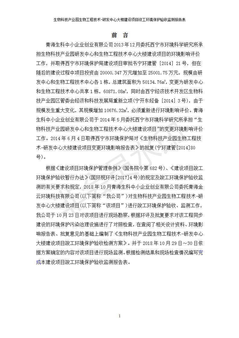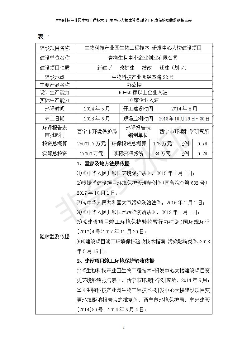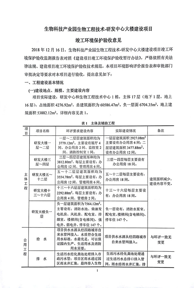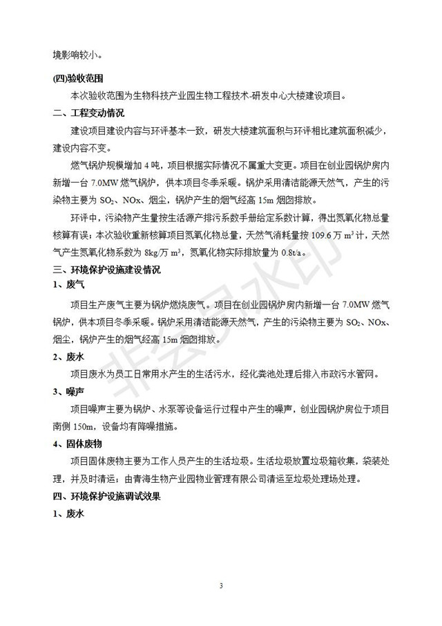 生物科技產(chǎn)業(yè)園生物工程技術(shù)-研發(fā)中心大樓建設(shè)項(xiàng)目竣工環(huán)境保護(hù)驗(yàn)收監(jiān)測報告表公示