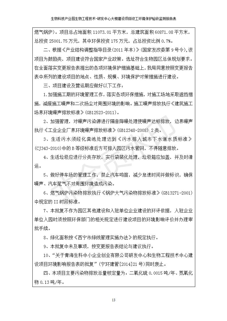 | 上一篇:青海一品畜產(chǎn)品加工有限責(zé)任公司牛羊屠宰加工項(xiàng)目 竣工環(huán)境保護(hù)驗(yàn)收監(jiān)測報告表公示 | 下一篇:祁連縣紅崖灣砂石料場1萬立方米/年采砂項(xiàng)目竣工環(huán)境保護(hù)驗(yàn)收監(jiān)測報告表 | |