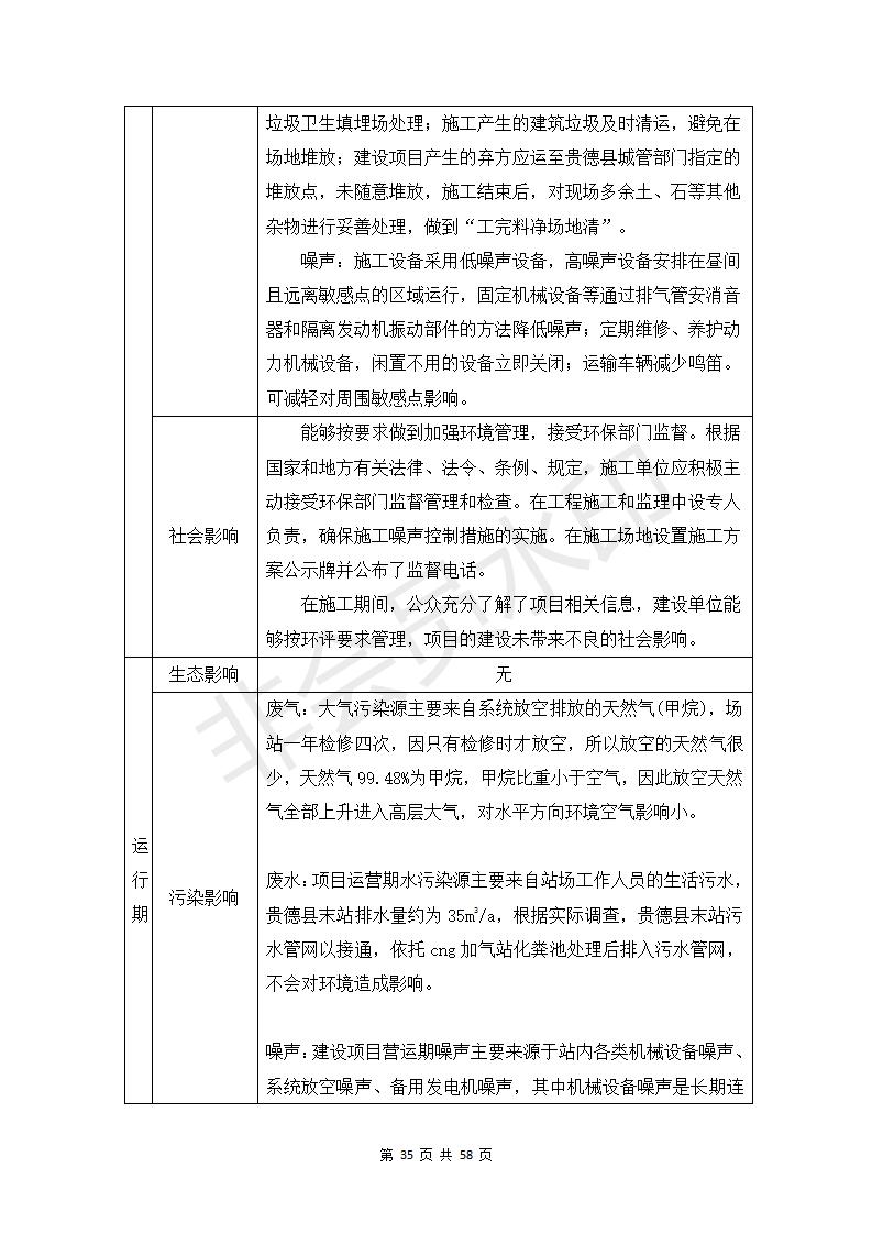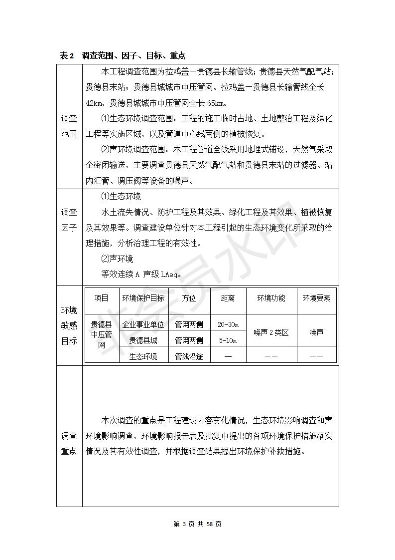 貴德縣城輸配管線工程竣工環(huán)境保護(hù)驗(yàn)收調(diào)查表公示