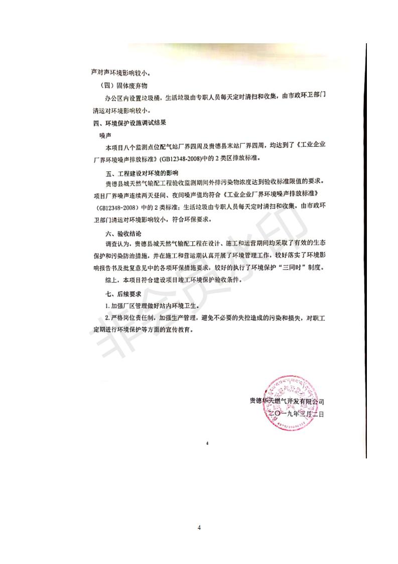 根據(jù)中華人民共和國(guó)務(wù)院令第682號(hào)《國(guó)務(wù)院關(guān)于修改〈建設(shè)項(xiàng)目環(huán)境保護(hù)管理?xiàng)l例〉的決定》和《建設(shè)項(xiàng)目竣工環(huán)境保護(hù)驗(yàn)收暫行辦法》(國(guó)務(wù)院令682號(hào)),貴德縣城輸配管線工程竣工環(huán)境保護(hù)驗(yàn)收內(nèi)容(包括竣工環(huán)境保護(hù)驗(yàn)收調(diào)查表和驗(yàn)收意見(jiàn))公示如下。 一、項(xiàng)目名稱:貴德縣城天然氣輸配工程 二、地點(diǎn):拉雞蓋澀寧蘭復(fù)線22#閥室-貴德縣城 三、建設(shè)單位:貴德華天燃?xì)忾_(kāi)發(fā)有限公司 四、建設(shè)內(nèi)容:貴德縣末站、貴德縣配氣站、貴德縣中壓管網(wǎng)、拉雞蓋22#閥室-貴德縣城長(zhǎng)輸管線 五、公示時(shí)間:二〇一九年三月十一日至二〇一九年四月八日 六、聯(lián)系人:張工 公示期間,對(duì)上述公示內(nèi)容如有異議,請(qǐng)以書面形式反饋,個(gè)人須署真實(shí)姓名,單位須加蓋公章。