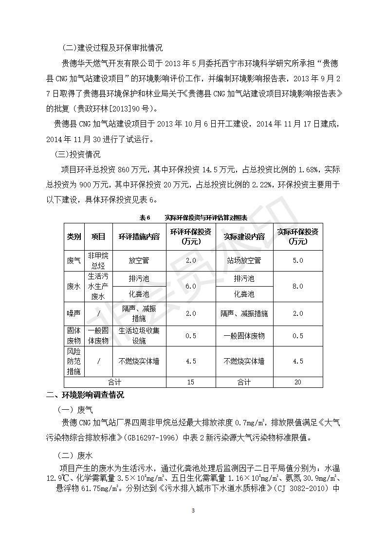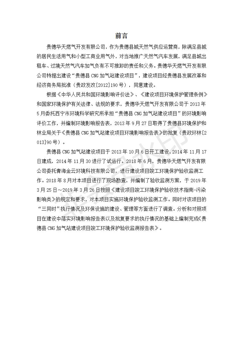 根據(jù)中華人民共和國(guó)務(wù)院令第682號(hào)《國(guó)務(wù)院關(guān)于修改〈建設(shè)項(xiàng)目環(huán)境保護(hù)管理?xiàng)l例〉的決定》和《建設(shè)項(xiàng)目竣工環(huán)境保護(hù)驗(yàn)收暫行辦法》(國(guó)務(wù)院令682號(hào)),青藏高原特色生物資源綠色開發(fā)工程研究中心建設(shè)項(xiàng)目竣工環(huán)境保護(hù)驗(yàn)收內(nèi)容(包括竣工環(huán)境保護(hù)驗(yàn)收調(diào)查報(bào)告和驗(yàn)收意見)公示如下: 一、項(xiàng)目名稱:貴德縣CNG加氣站建設(shè)項(xiàng)目 二、地點(diǎn):貴德縣河西鎮(zhèn)紅巖村 三、建設(shè)單位:貴德華天燃?xì)忾_發(fā)有限公司 四、建設(shè)內(nèi)容:日供氣量為1.5×104Nm的加氣站 五、公示時(shí)間:二〇一九年五月二十九日至二〇一九年六月二十五日 六、聯(lián)系人:張工 公示期間,對(duì)上述公示內(nèi)容如有異議,請(qǐng)以書面形式反饋,個(gè)人須署真實(shí)姓名,單位須加蓋公章。