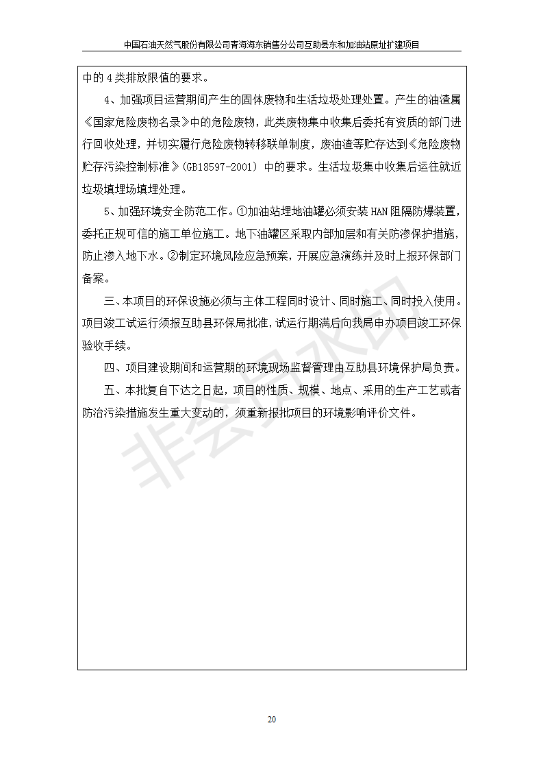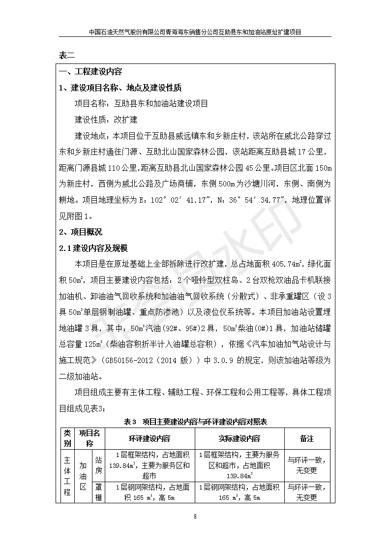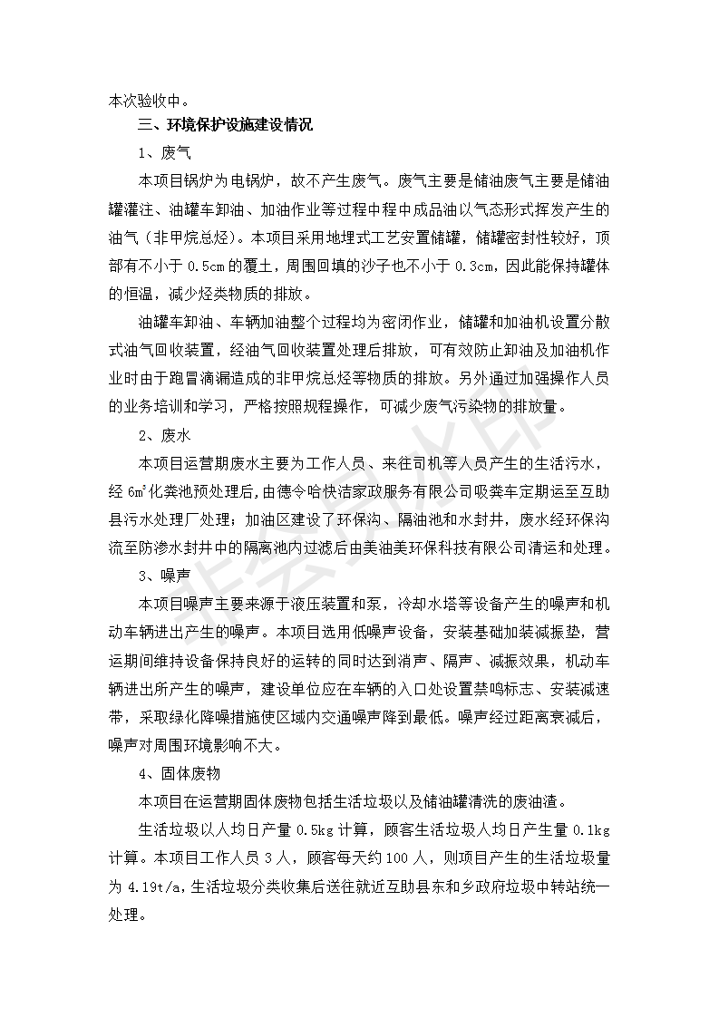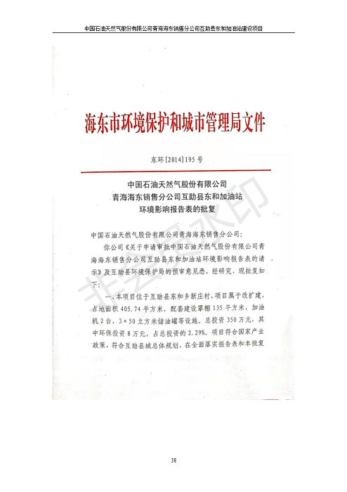 根據(jù)中華人民共和國國務(wù)院令第682號(hào)《國務(wù)院關(guān)于修改〈建設(shè)項(xiàng)目環(huán)境保護(hù)管理?xiàng)l例〉的決定》和《建設(shè)項(xiàng)目竣工環(huán)境保護(hù)驗(yàn)收暫行辦法》(國務(wù)院令682號(hào)),互助縣東和加油站原址擴(kuò)建項(xiàng)目(包括竣工環(huán)境保護(hù)驗(yàn)收監(jiān)測報(bào)告表和驗(yàn)收意見)公示如下。 一、項(xiàng)目名稱:互助縣東和加油站原址擴(kuò)建項(xiàng)目 二、地點(diǎn):互助縣威遠(yuǎn)鎮(zhèn)東和鄉(xiāng)新莊村 六、聯(lián)系電話:0971-6515411 七、公示時(shí)間:二〇一九年九月二十七日至二〇一九年十月二十九日 公示期間,對(duì)上述公示內(nèi)容如有異議,請(qǐng)以書面形式反饋,個(gè)人須署真實(shí)姓名,單位須加蓋公章。