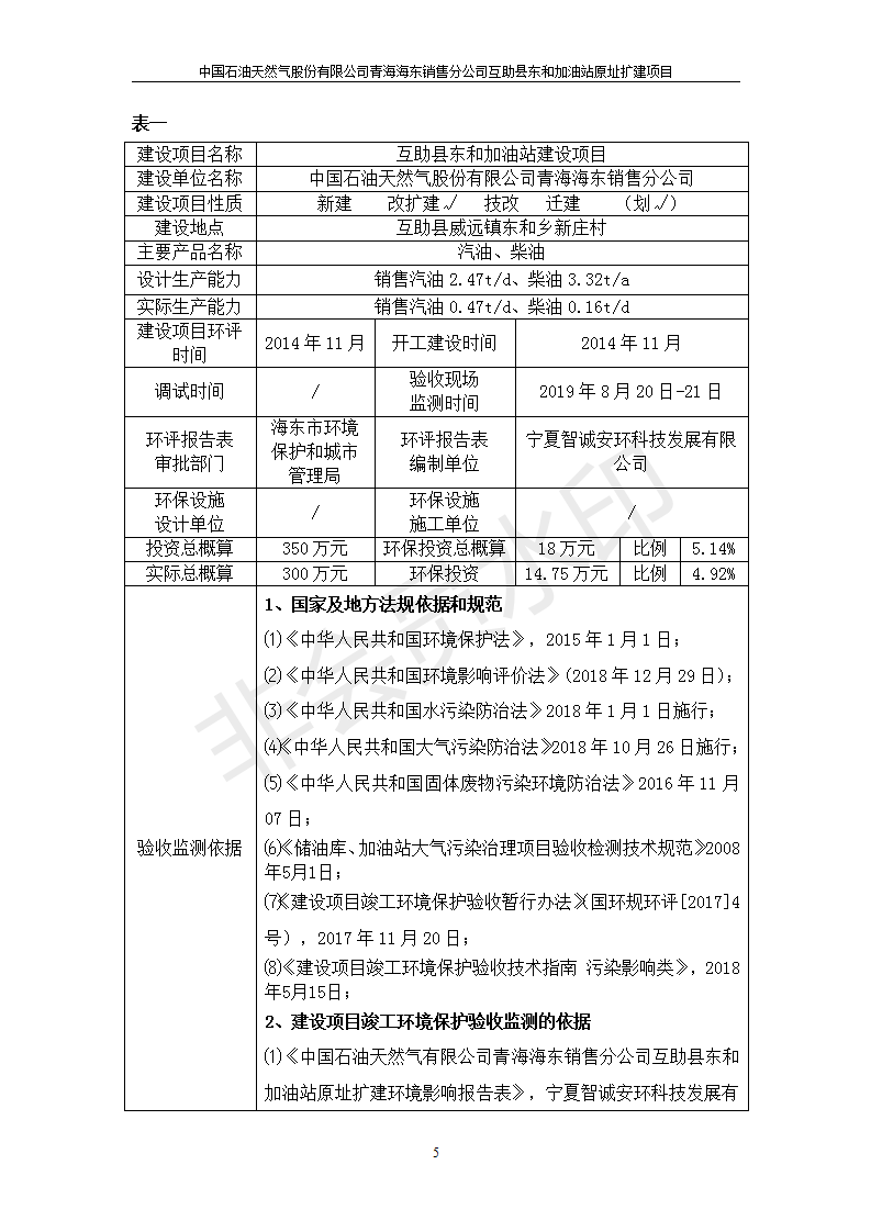 互助縣東和加油站原址擴(kuò)建項(xiàng)目 竣工環(huán)境保護(hù)驗(yàn)收監(jiān)測報(bào)告表公示發(fā)布日期:(2019-9-27) 點(diǎn)擊次數(shù):2376 |