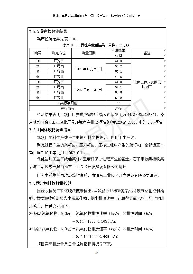 糧油、食品、飼料等加工綜合園區(qū)項(xiàng)目竣工環(huán)境保護(hù)驗(yàn)收監(jiān)測(cè)報(bào)告表公示發(fā)布日期:(2019-10-9) 點(diǎn)擊次數(shù):2532 |