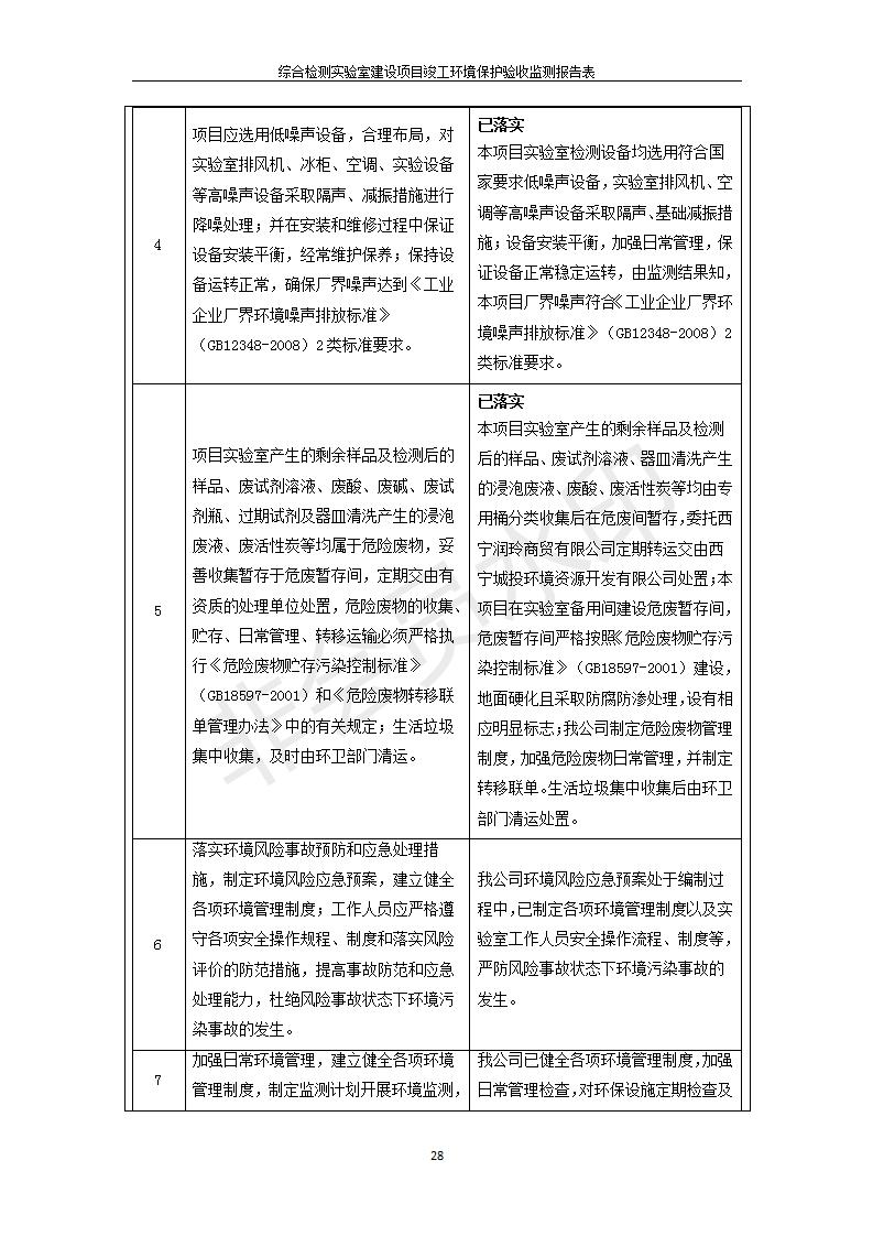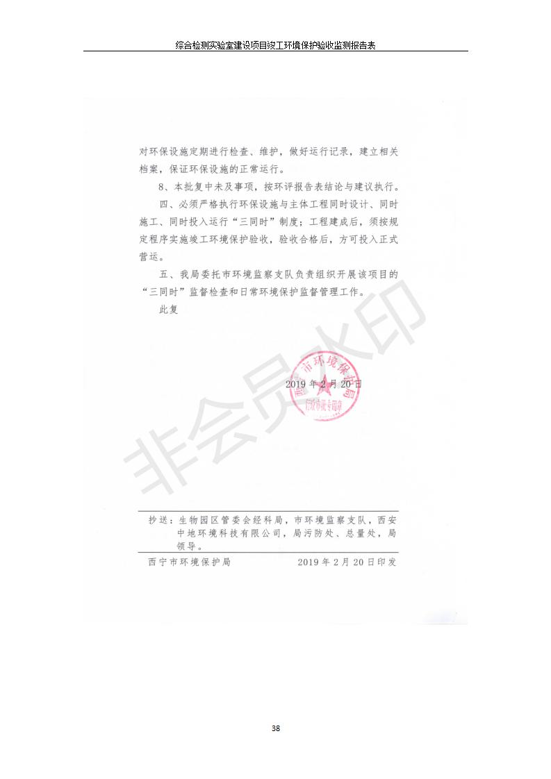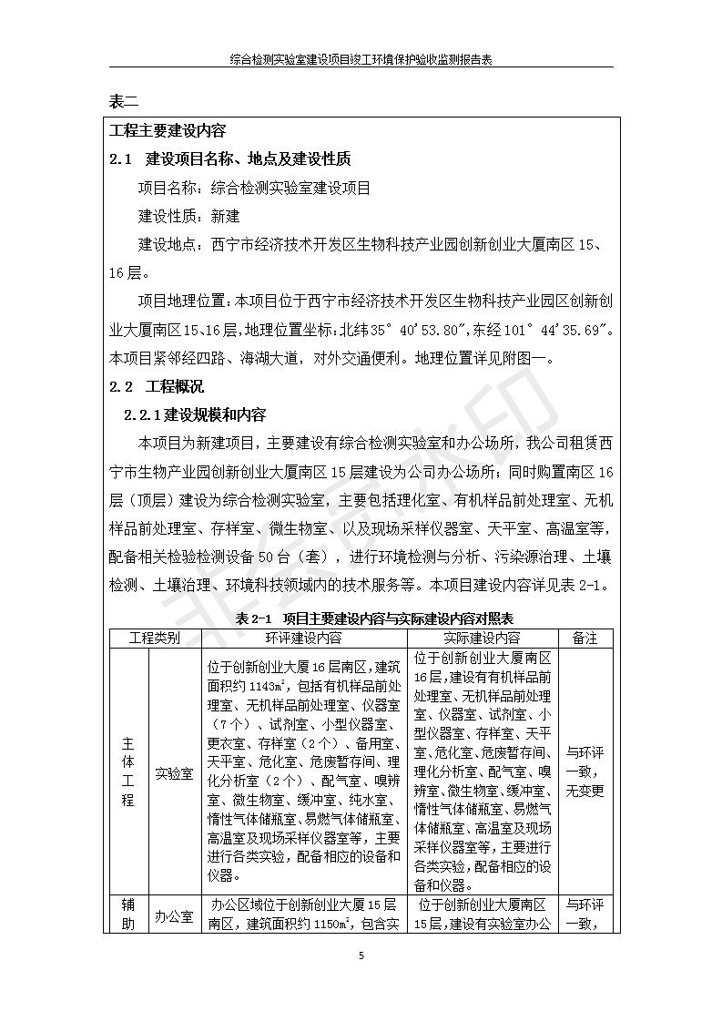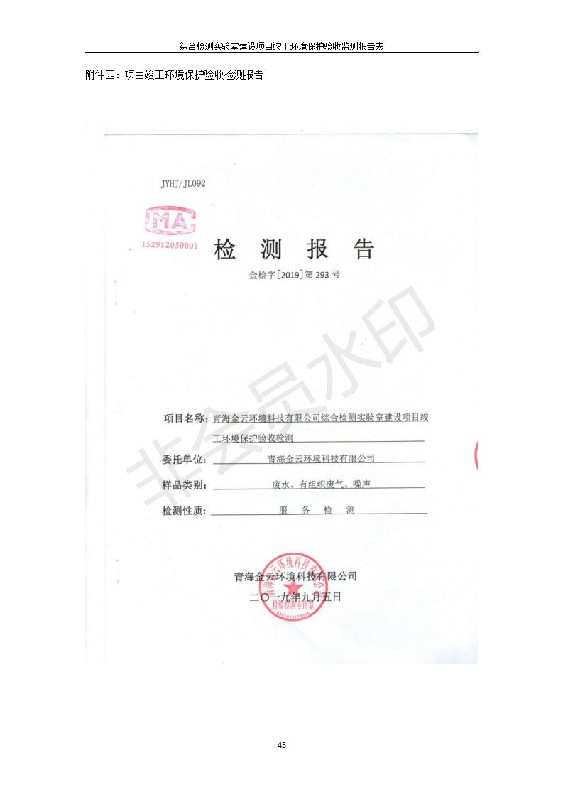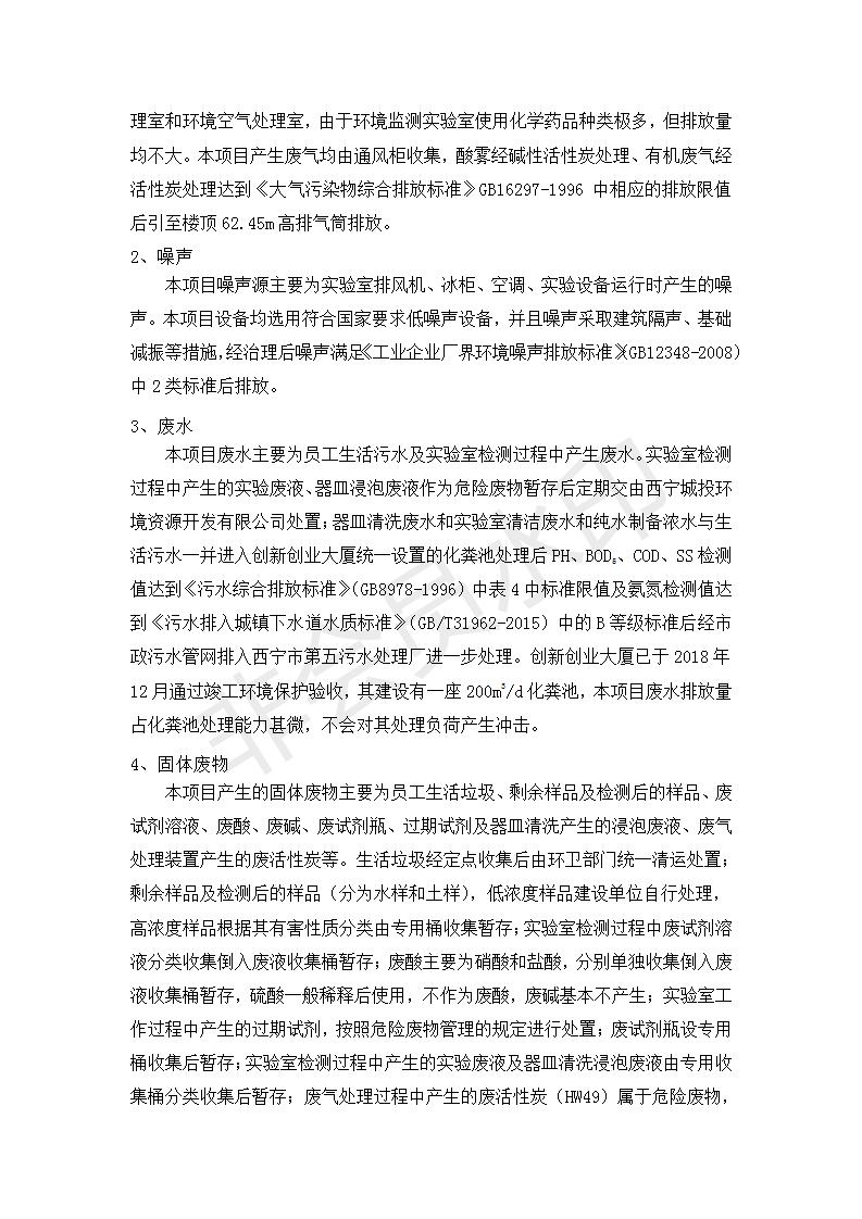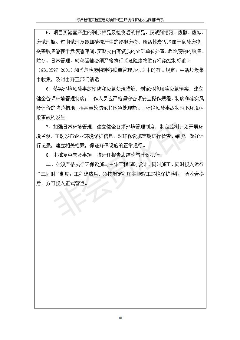 根據(jù)中華人民共和國(guó)國(guó)務(wù)院令第682號(hào)《國(guó)務(wù)院關(guān)于修改〈建設(shè)項(xiàng)目環(huán)境保護(hù)管理?xiàng)l例〉的決定》和《建設(shè)項(xiàng)目竣工環(huán)境保護(hù)驗(yàn)收暫行辦法》(國(guó)務(wù)院令682號(hào)),綜合檢測(cè)實(shí)驗(yàn)室建設(shè)項(xiàng)目(包括竣工環(huán)境保護(hù)驗(yàn)收監(jiān)測(cè)報(bào)告表和驗(yàn)收意見(jiàn))公示如下。 一、項(xiàng)目名稱:綜合檢測(cè)實(shí)驗(yàn)室建設(shè)項(xiàng)目 二、地點(diǎn):西寧市經(jīng)濟(jì)技術(shù)開(kāi)發(fā)區(qū)生物科技產(chǎn)業(yè)園區(qū)創(chuàng)新創(chuàng)業(yè)大廈南區(qū)15、16層 六、聯(lián)系電話:0971-6515411 七、公示時(shí)間:二〇一九年十一月十九日至二〇一九年十二月十六日 公示期間,對(duì)上述公示內(nèi)容如有異議,請(qǐng)以書(shū)面形式反饋,個(gè)人須署真實(shí)姓名,單位須加蓋公章。