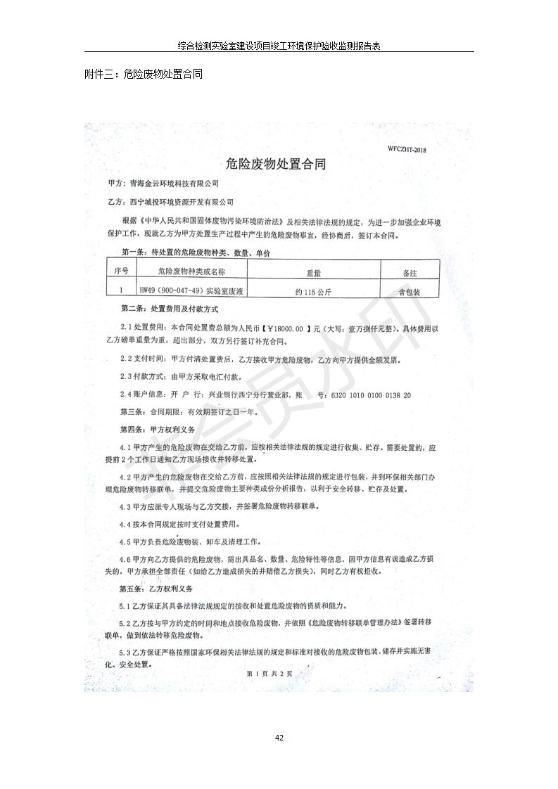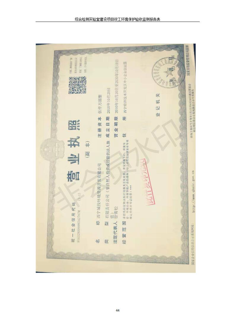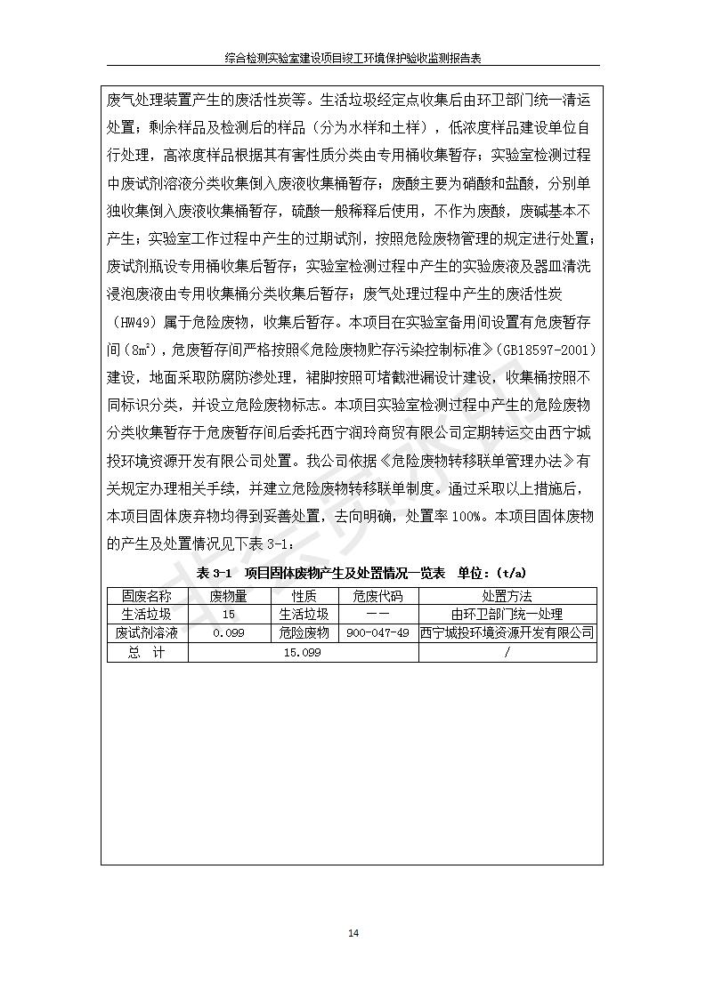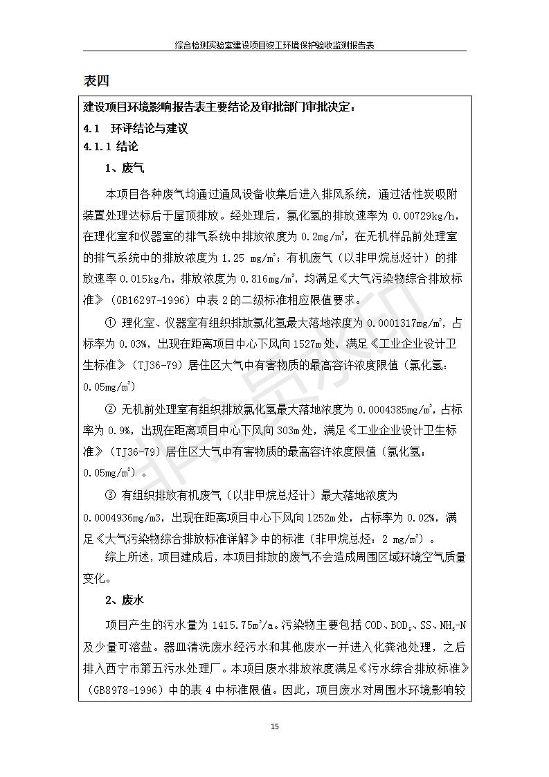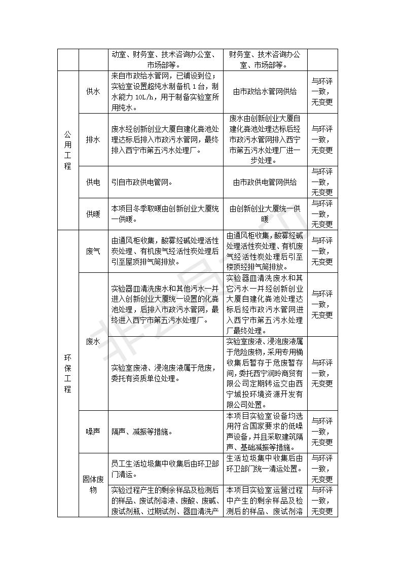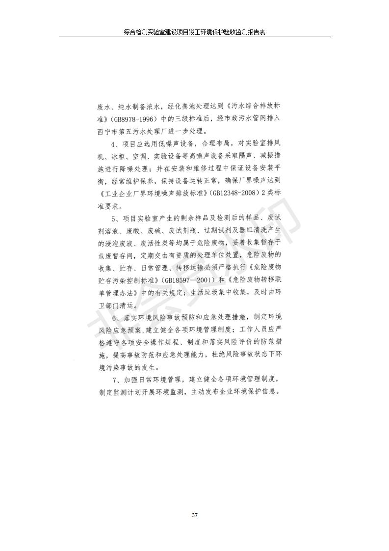 根據(jù)中華人民共和國(guó)國(guó)務(wù)院令第682號(hào)《國(guó)務(wù)院關(guān)于修改〈建設(shè)項(xiàng)目環(huán)境保護(hù)管理?xiàng)l例〉的決定》和《建設(shè)項(xiàng)目竣工環(huán)境保護(hù)驗(yàn)收暫行辦法》(國(guó)務(wù)院令682號(hào)),綜合檢測(cè)實(shí)驗(yàn)室建設(shè)項(xiàng)目(包括竣工環(huán)境保護(hù)驗(yàn)收監(jiān)測(cè)報(bào)告表和驗(yàn)收意見(jiàn))公示如下。 一、項(xiàng)目名稱:綜合檢測(cè)實(shí)驗(yàn)室建設(shè)項(xiàng)目 二、地點(diǎn):西寧市經(jīng)濟(jì)技術(shù)開(kāi)發(fā)區(qū)生物科技產(chǎn)業(yè)園區(qū)創(chuàng)新創(chuàng)業(yè)大廈南區(qū)15、16層 六、聯(lián)系電話:0971-6515411 七、公示時(shí)間:二〇一九年十一月十九日至二〇一九年十二月十六日 公示期間,對(duì)上述公示內(nèi)容如有異議,請(qǐng)以書(shū)面形式反饋,個(gè)人須署真實(shí)姓名,單位須加蓋公章。