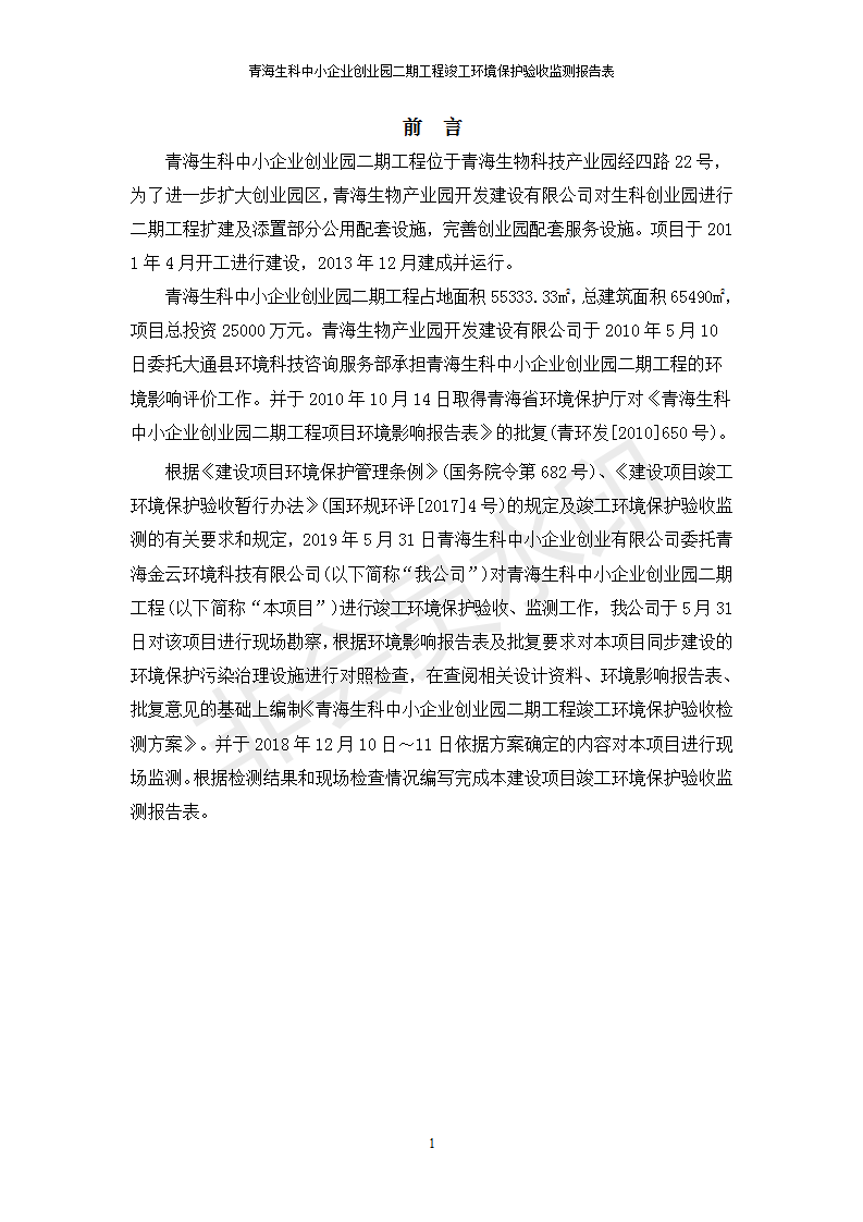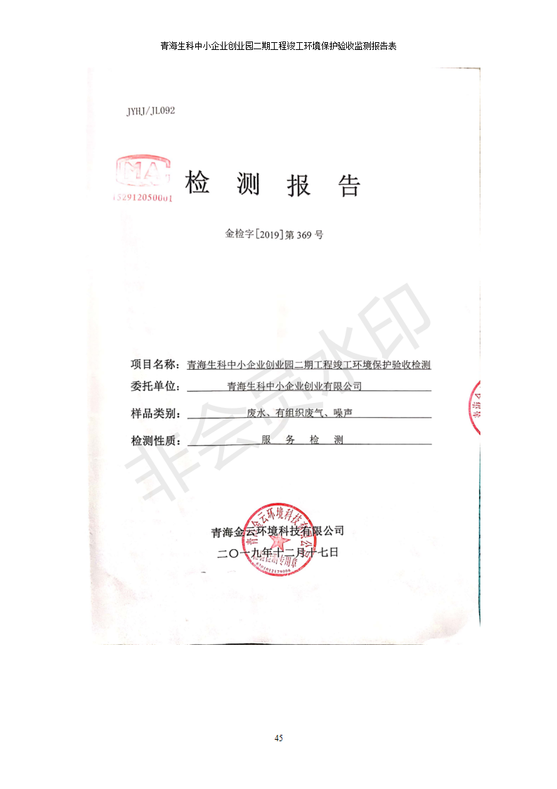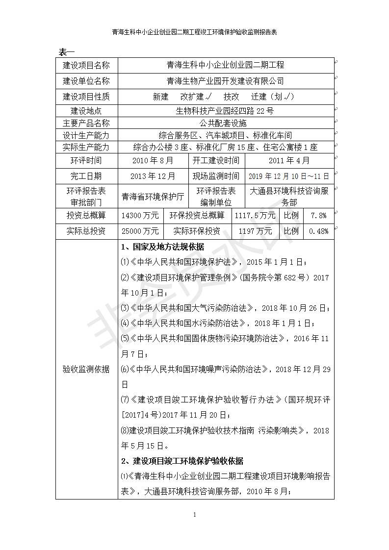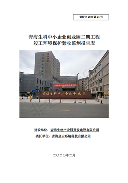 青海生科中小企業(yè)創(chuàng)業(yè)園二期工程建設(shè)項(xiàng)目竣工環(huán)境保護(hù)驗(yàn)收檢測(cè)報(bào)告表公示發(fā)布日期:(2020-2-1) 點(diǎn)擊次數(shù):2272 |