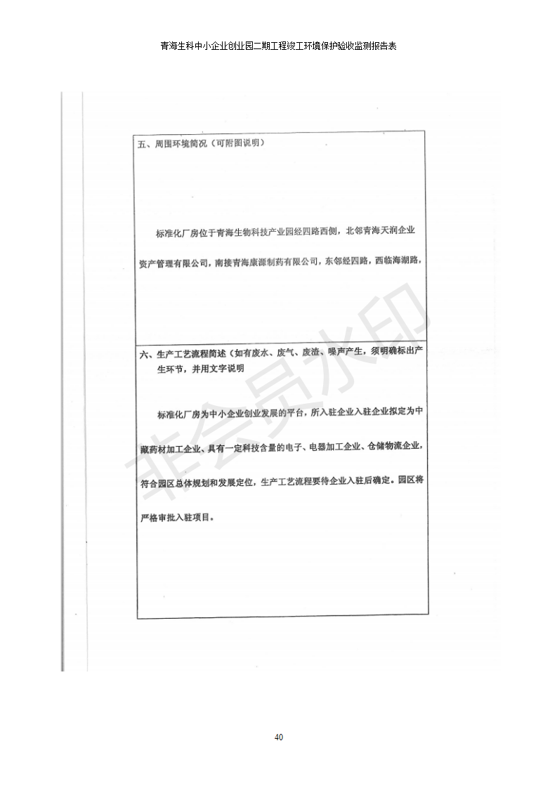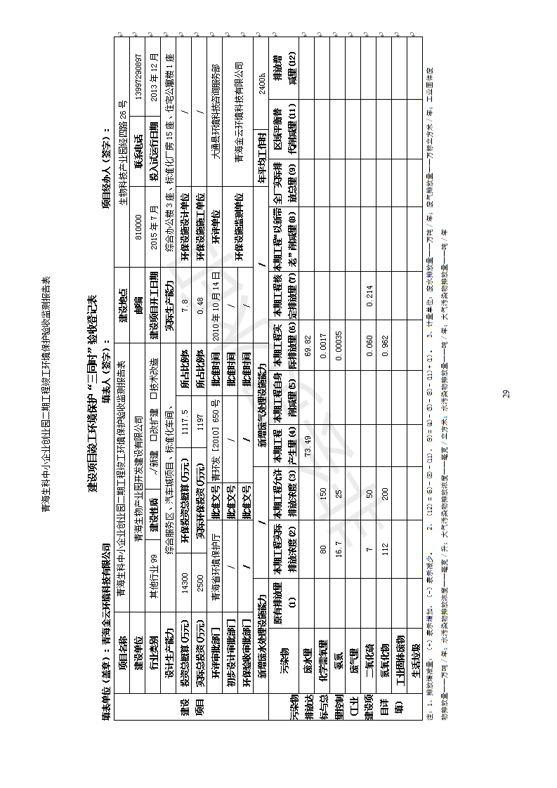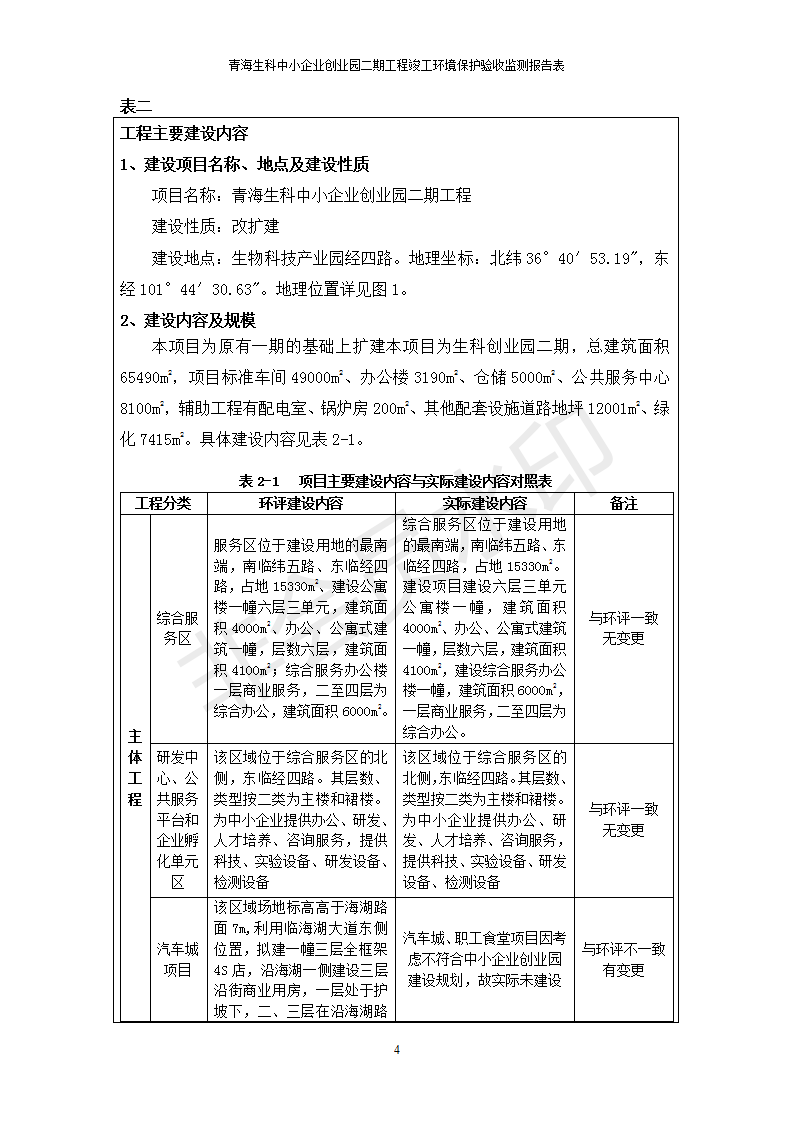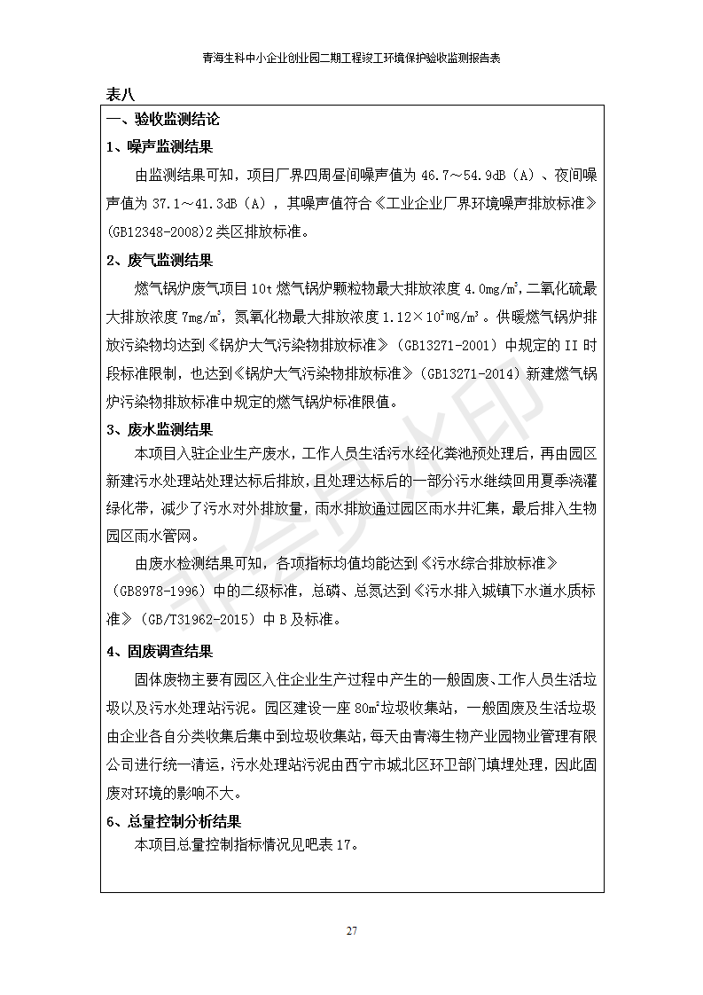青海生科中小企業(yè)創(chuàng)業(yè)園二期工程建設(shè)項(xiàng)目竣工環(huán)境保護(hù)驗(yàn)收檢測(cè)報(bào)告表公示發(fā)布日期:(2020-2-1) 點(diǎn)擊次數(shù):2272 |
