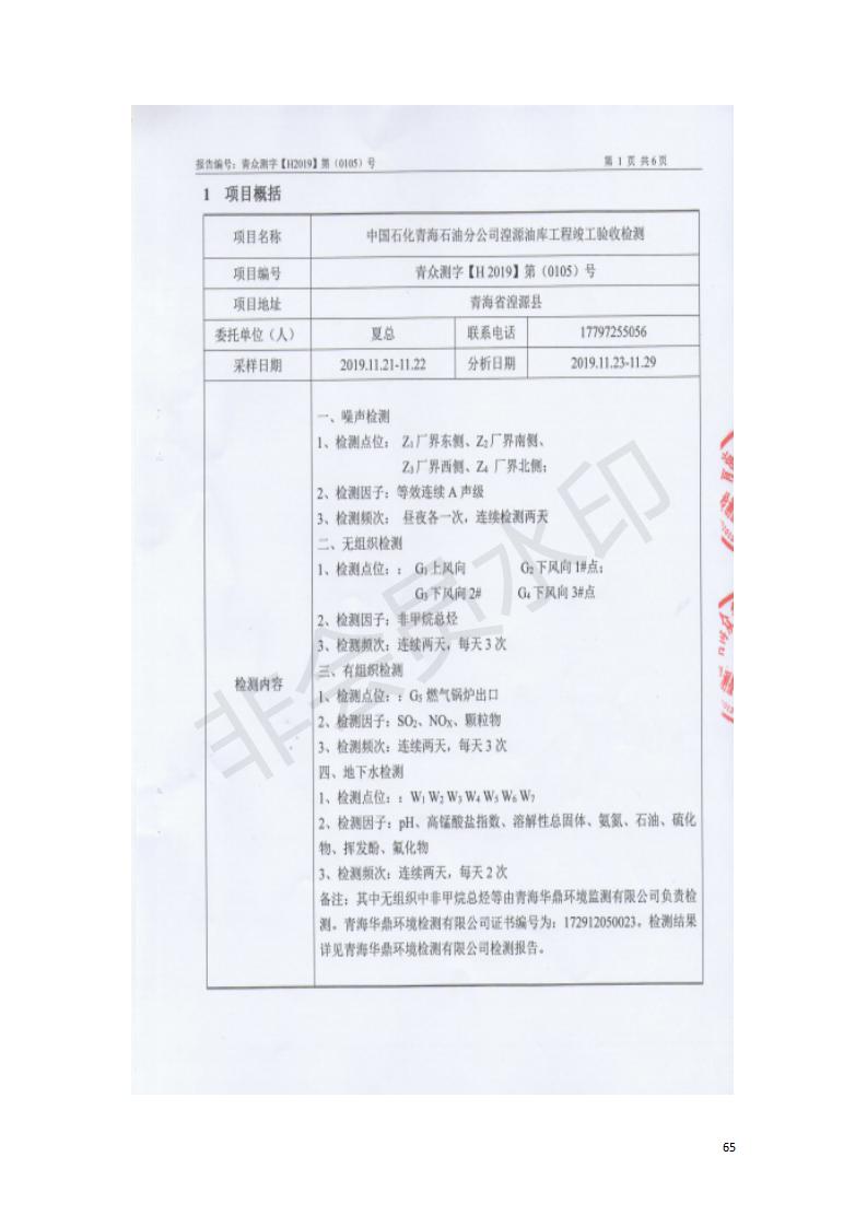據(jù)中華人民共和國國務(wù)院令第682號《國務(wù)院關(guān)于修改〈建設(shè)項目環(huán)境保護管理條例〉的決定》和《建設(shè)項目竣工環(huán)境保護驗收暫行辦法》(國務(wù)院令682號),中國石化青海石油分公司湟源油庫工程建設(shè)項目(包括竣工環(huán)境保護驗收監(jiān)測報告表和驗收意見)公示如下。 一、項目名稱:中國石化青海石油分公司湟源油庫工程建設(shè)項目 二、地點:西寧市湟源縣申中鄉(xiāng)立達村尕莊臺 三、建設(shè)單位:中國石化銷售股份有限公司青海石油分公司 四、建設(shè)內(nèi)容:油品儲量6萬m3、其他配套設(shè)施。五、聯(lián)系人:董恒棟 六、聯(lián)系電話:18697130811 七、公示時間:二〇二〇年三月十三日至二〇二〇年四月十日 公示期間,對上述公示內(nèi)容如有異議,請以書面形式反饋,個人須署真實姓名,單位須加蓋公章。