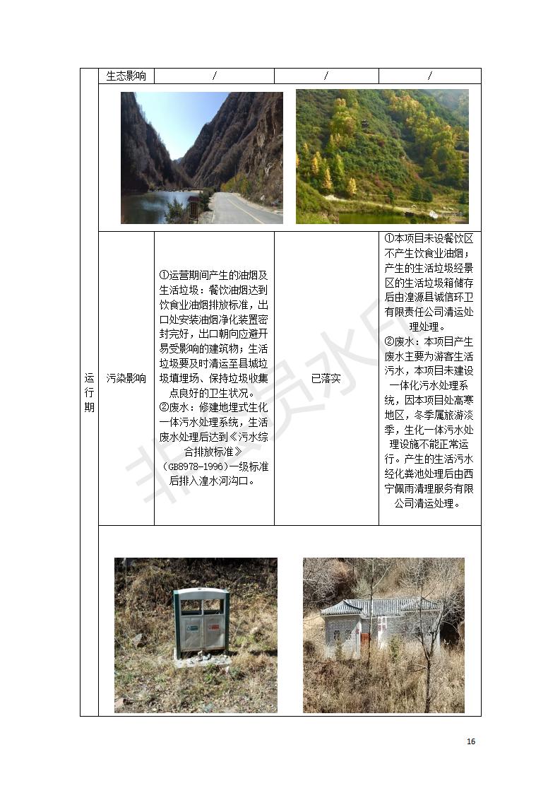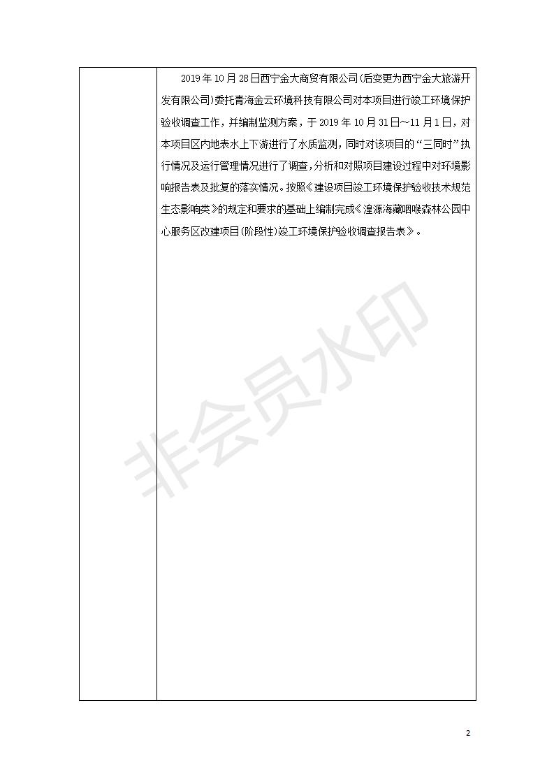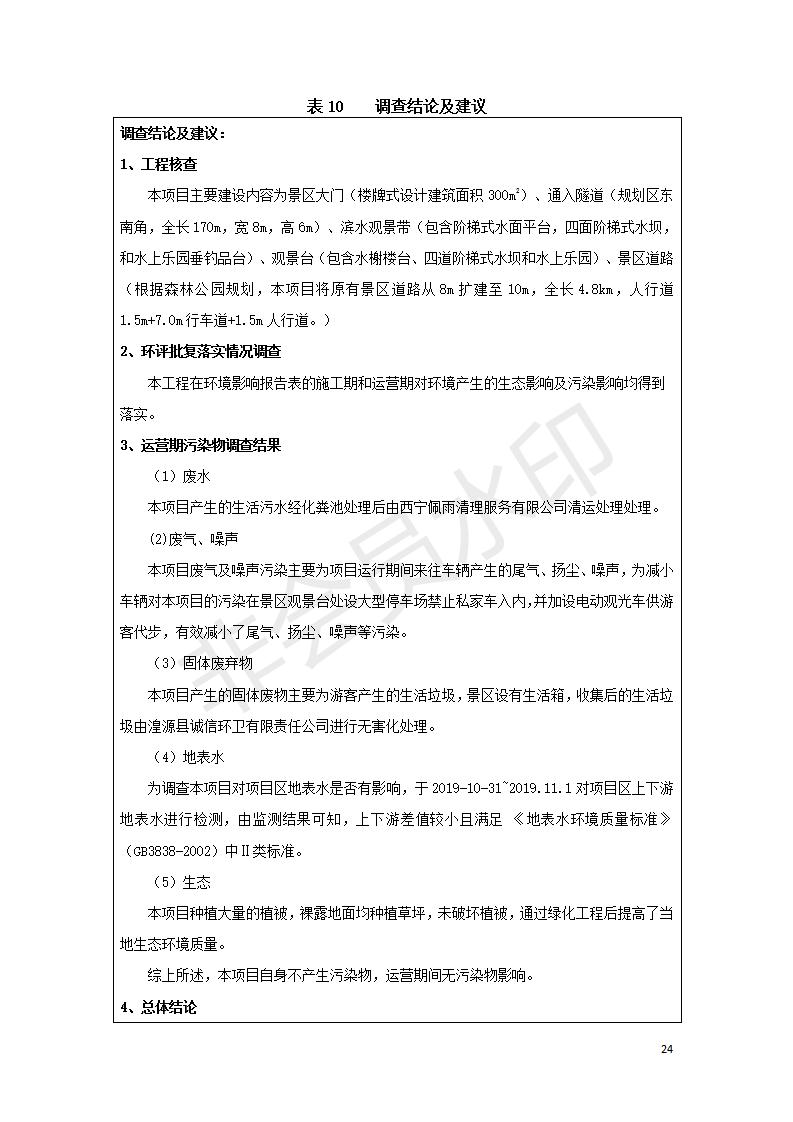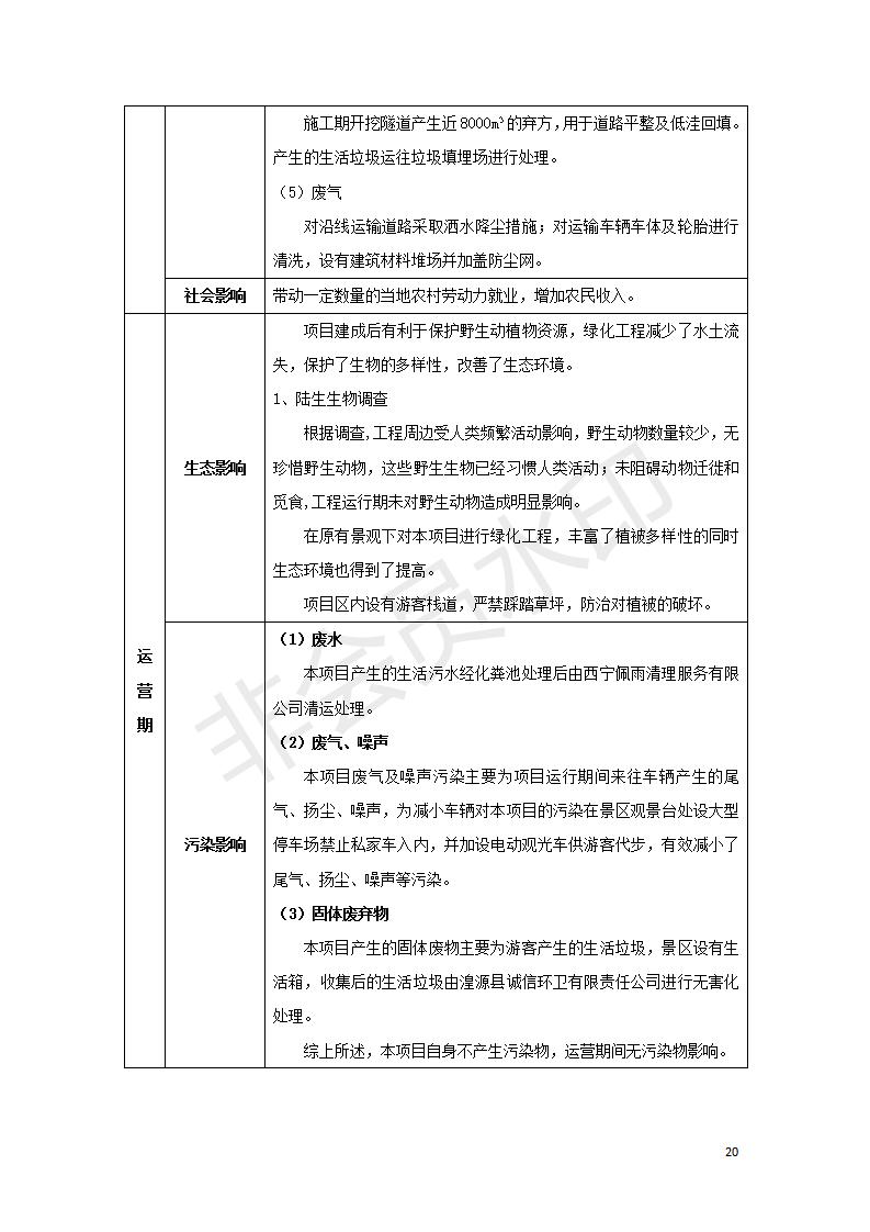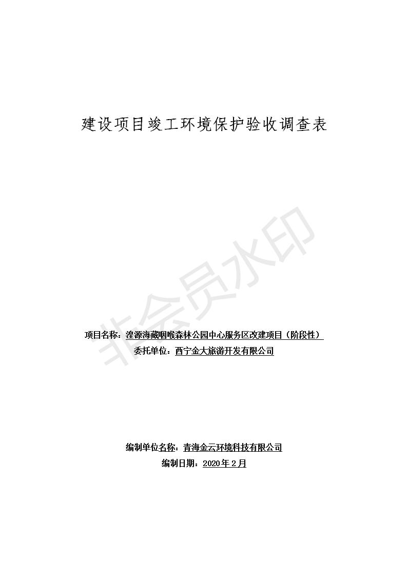 根據(jù)中華人民共和國(guó)國(guó)務(wù)院令第682號(hào)《國(guó)務(wù)院關(guān)于修改〈建設(shè)項(xiàng)目環(huán)境保護(hù)管理?xiàng)l例〉的決定》和《建設(shè)項(xiàng)目竣工環(huán)境保護(hù)驗(yàn)收暫行辦法》(國(guó)務(wù)院令682號(hào)),湟源海藏咽喉森林公園中心服務(wù)區(qū)改建項(xiàng)目(階段性),(包括竣工環(huán)境保護(hù)驗(yàn)收調(diào)查表和驗(yàn)收意見)公示如下。 一、項(xiàng)目名稱:湟源海藏咽喉森林公園中心服務(wù)區(qū)改建項(xiàng)目(階段性) 竣工環(huán)境保護(hù)驗(yàn)收調(diào)查表 二、地點(diǎn):青海省湟源縣東峽鄉(xiāng)大黑溝 三、建設(shè)單位:西寧金大旅游開發(fā)有限公司 四、建設(shè)內(nèi)容:本次階段性驗(yàn)收以自然景觀為主,建設(shè)內(nèi)容為濱水景觀帶、觀景臺(tái)、景區(qū)道路及基礎(chǔ)設(shè)施。項(xiàng)目范圍從景區(qū)大門至中心位置,全長(zhǎng)4800m。 五、聯(lián)系人:張工 六、聯(lián)系電 話:0971-6515411 七、公示時(shí)間:二〇二〇年四月二十九日至二〇二〇年五月二十八日 公示期間,對(duì)上述公示內(nèi)容如有異議,請(qǐng)以書面形式反饋,個(gè)人須署真實(shí)姓名,單位須加蓋公章。