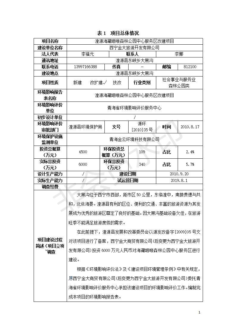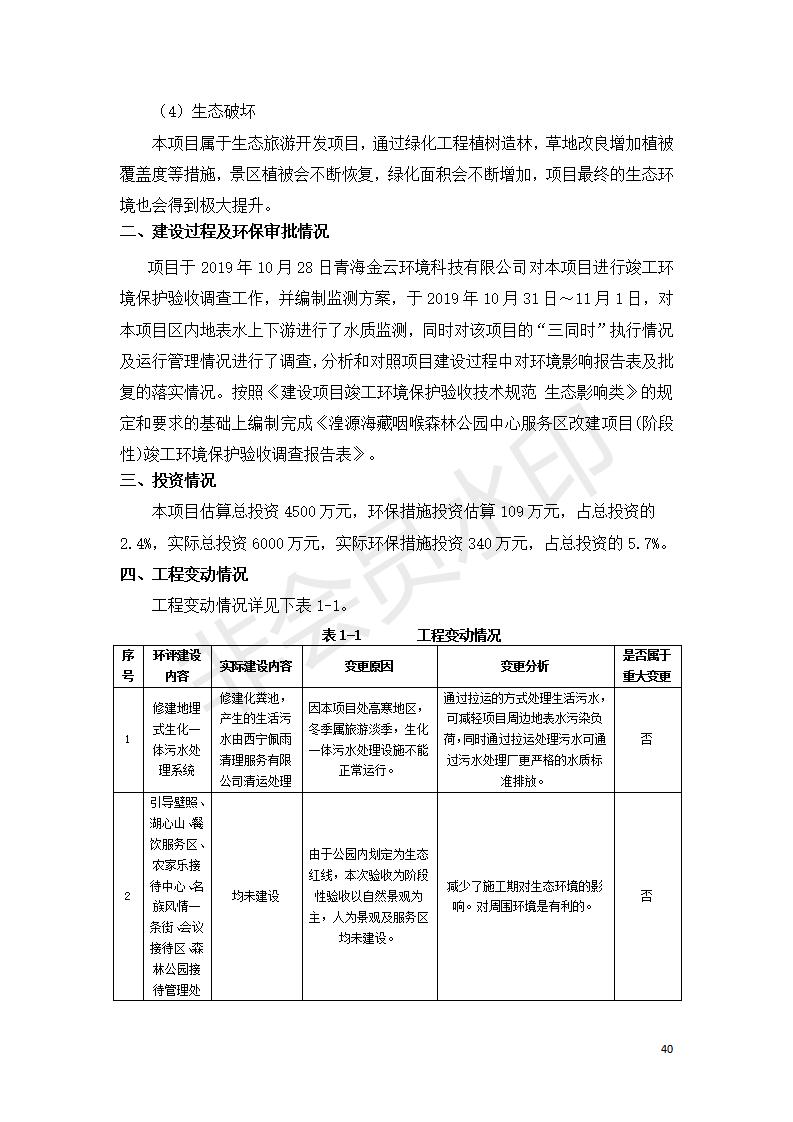 湟源海藏咽喉森林公園中心服務(wù)區(qū)改建項(xiàng)目(階段性)竣工環(huán)境保護(hù)驗(yàn)收調(diào)查表發(fā)布日期:(2020-4-29) 點(diǎn)擊次數(shù):2993 |