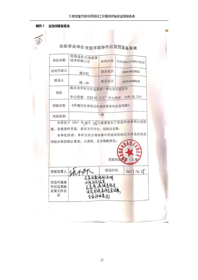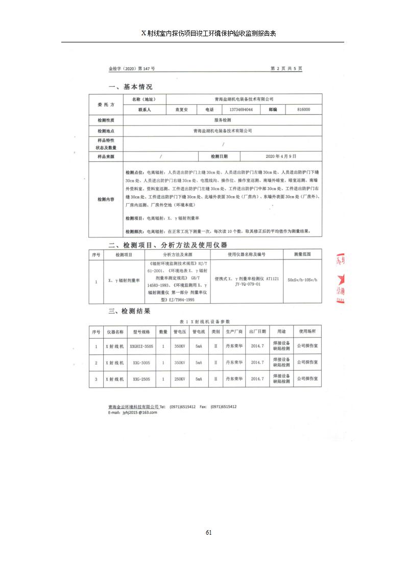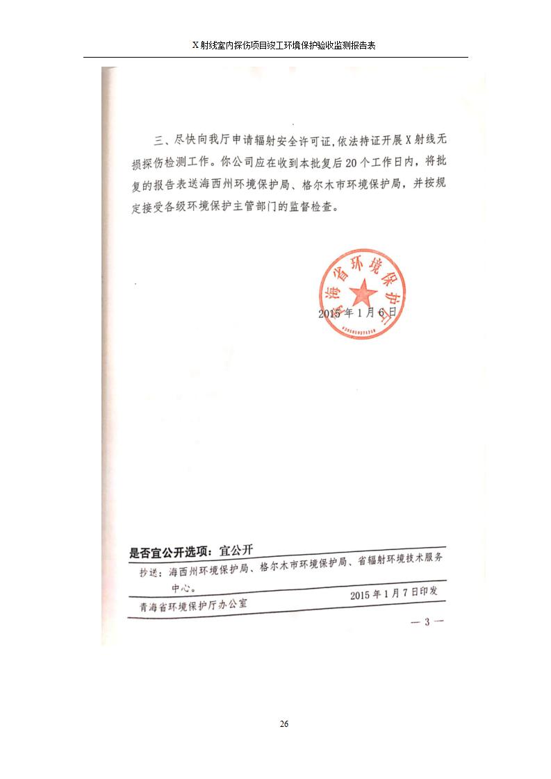 青海鹽湖機(jī)電裝備技術(shù)有限公司X射線室內(nèi)探傷項(xiàng)目竣工環(huán)境保護(hù)驗(yàn)收監(jiān)測報(bào)告表公示發(fā)布日期:(2020-7-10) 點(diǎn)擊次數(shù):3201 |